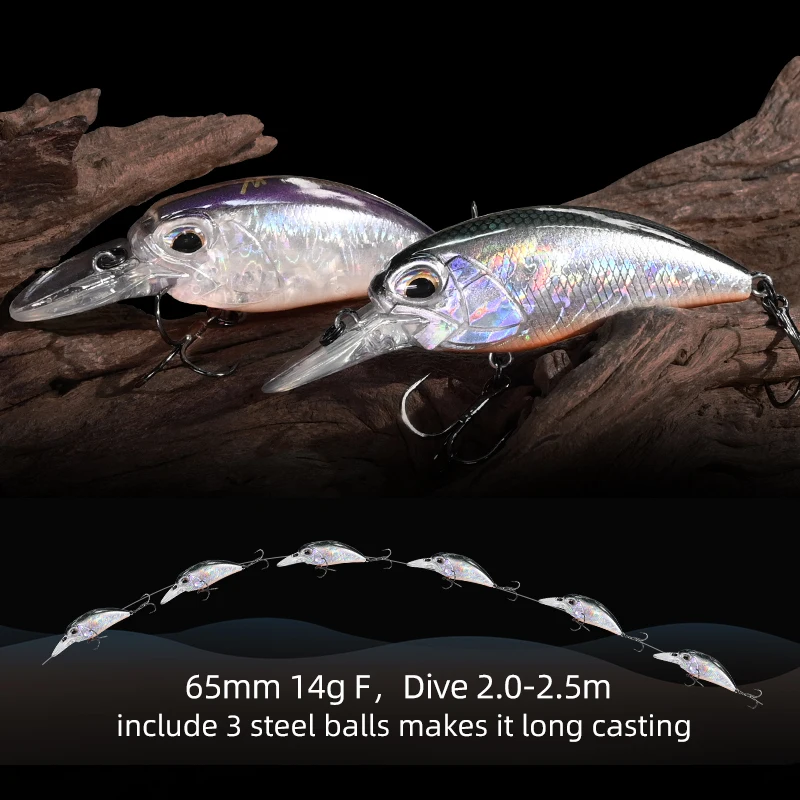 This floating crankbait fishing lure is designed to attract predatory fish with lifelike movement and color. Measuring 6.5cm and weighing 14g, it mimics the natural swimming action of a minnow. The realistic 3D eyes and vibrant finish make it irresistible to trout and other game fish. Equipped with sharp, durable treble hooks for secure catches. The floating design allows it to stay visible and effective at various depths. Perfect for freshwater fishing in lakes, rivers, and streams. Made from high-quality materials for long-lasting performance. The aerodynamic body ensures smooth and accurate casting. Ideal for both beginner and experienced anglers seeking reliable bait. Catch more fish with this premium, realistic crankbait lure.